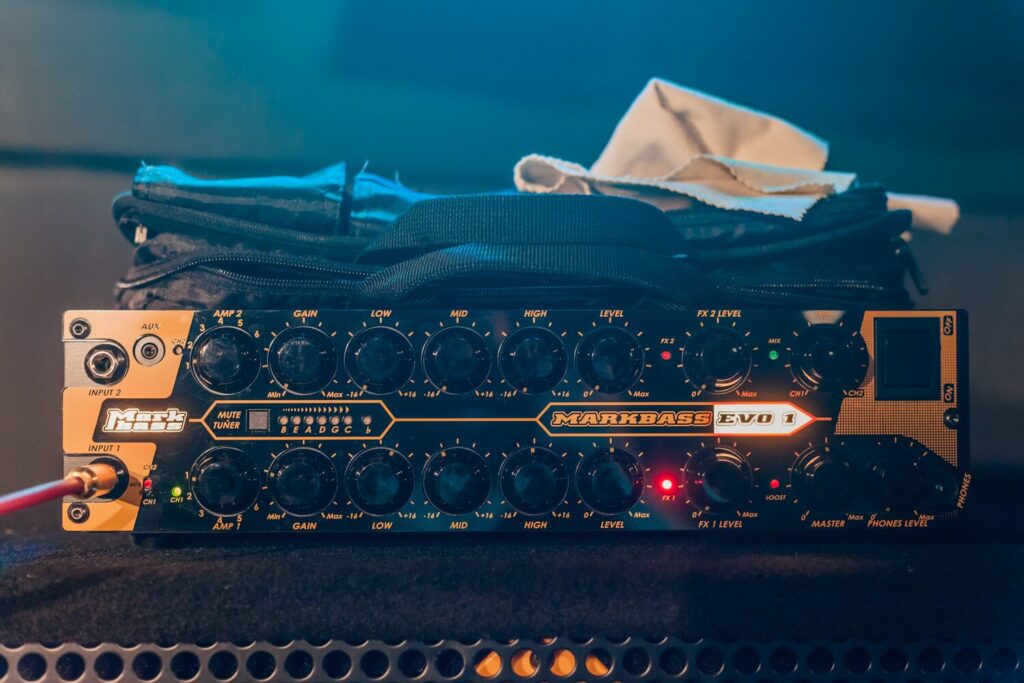BOH:ずっとレンタルしたり、デビューした時はバッソンのキャビネットを使ったりとかしていて・・・ただあのキャビネットはめちゃくちゃ重いんですよね 笑。EBSを使っていた時期もあったんですけど。6弦ベースを鳴らす時に困っていたのは、高い音が出ないというところと、早いパッセージについてこれないってところでして。アトリエZがもともとアタッキーな成分があるので、どうも自分の求めているものにならなかったんですね。いろんなものを試す中でマークベースが出てきまして、アンプ単体でいえばライン出しみたいな音がしているんですけど、1弦から6弦までのブレが無くて、自分が思った音を素直に出してくれるんです。