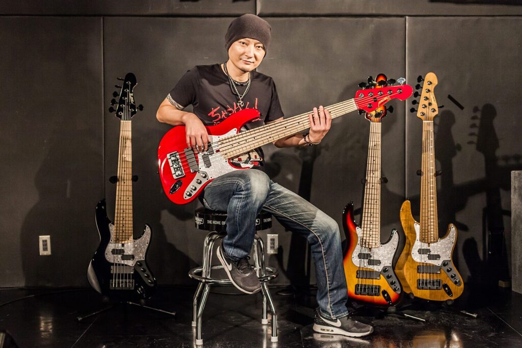 その後、東京に出てきて、音楽学校の入学祝いで親父にフェンダーUSAのアメリカン・デラックス・シリーズのプレシジョン・ベースを買ってもらってしばらく使っていたんですけど、音楽学校の講師の人に「6弦ベースっていうものがあるから弾いてみろ」って言われまして。安く買える6弦ベースって無いかなって探して、渋谷のイケベでTUNEの6弦ベースを買いました。その後にいろんなミュージシャンの人達のお言葉もあって、もっとしっかりと6弦ベースを探し出すんですけど、当時は6弦ベースってまだ楽器として完成されてないような感じだったんです。1弦だけ音が小さかったりとか、B弦だけ音が大きかったりとか、バランスが悪くてどうしようって思っていて。そんな中で先程の6弦ベースに出会ったんですけど、このまま買って使うなら自分用にカスタマイズしてもらえないのかなって、直接アトリエZに行ったんです。
