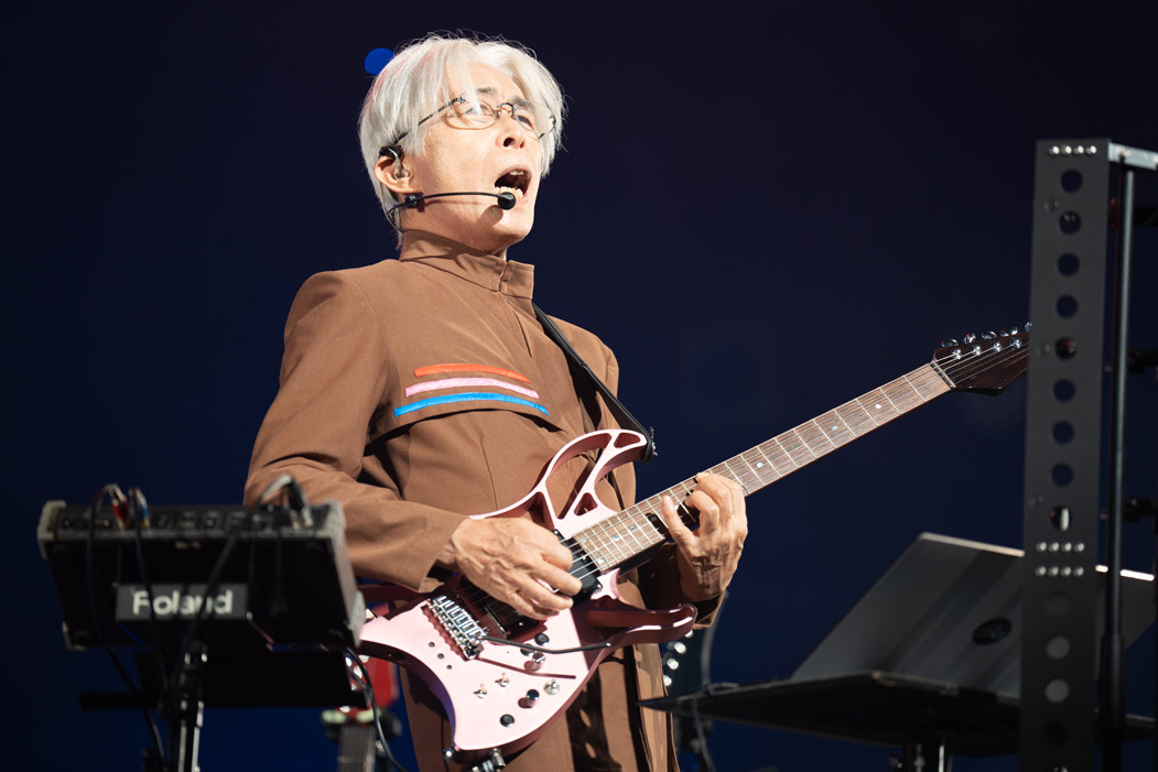続け様に『P-MODEL』数年間の凍結期直前、86年のアルバムから『おやすみDOG』。そして、更に時代を遡り、79年発表の楽曲『偉大なる頭脳』へと続く・・・。立て続けに現れた『P-MODEL』の楽曲群。ヒートアップした会場が、すかさず青く染まる。その直後。ソロ名義最新作『BEACON』へ。大きな振り幅で2020年代へと我々を引き戻す。