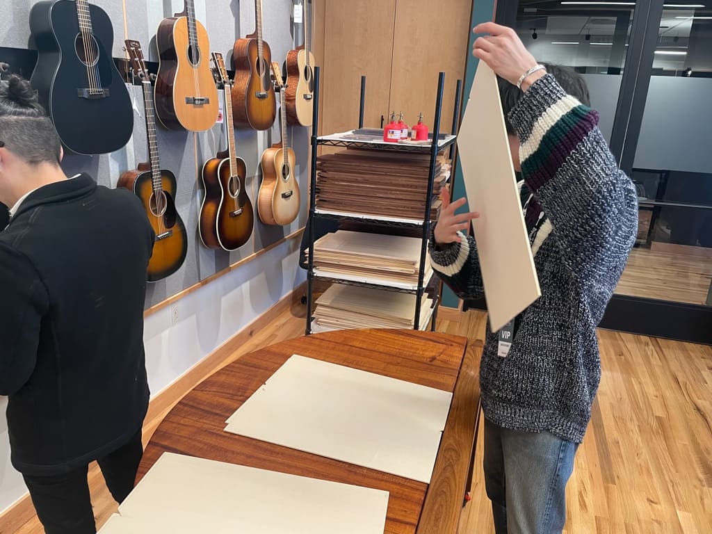 そんなカスタムショップにて、アコギが大好きなお客様に喜んでいただくための特別なショップオリジナルモデルを(マーチンファンである僕の欲望の赴くまま好き勝手に)デザインし、更には現地工場で材料まで自分の手で選んできて、世界に1本だけのスペシャルなギターを作ってしまおうという、なんとも贅沢(私欲にまみれた)な企画なのです!!