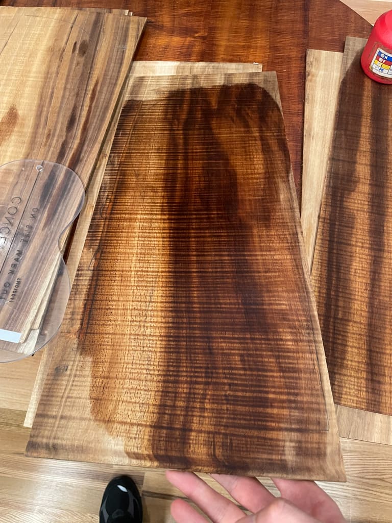 キルトメイプルの木目が仕上がりの美しさを決定しますので、こちらは厳選に厳選を重ねて選定しました…