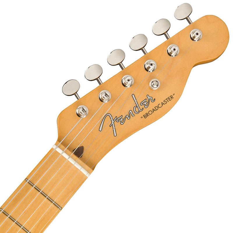 こうして、1950年フェンダー社はこの新しいエレクトリック・スパニッシュ・ギターを製造ラインに乗せます。まず、リアピックアップのみ搭載されたフェンダーエスクワイヤーを発売。その後小ロットでフロントピックアップも搭載したモデルも発売します(このモデルは、希少なのでヴィンテージ市場でかなりの価値があります!)。そして同年の秋に2つのピックアップを搭載して“Broadcaster(ブロードキャスター)”と商品名を付けて発売します。(当時の定価は169ドル95セント。Martin D-28が当時約220ドルだったことからも安価だったことが分かります。)