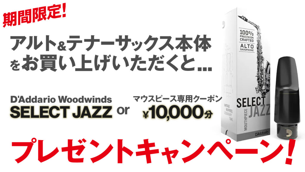期間中、税込価格30万円以上のアルト&テナーサックス本体をお買い上げいただくと、