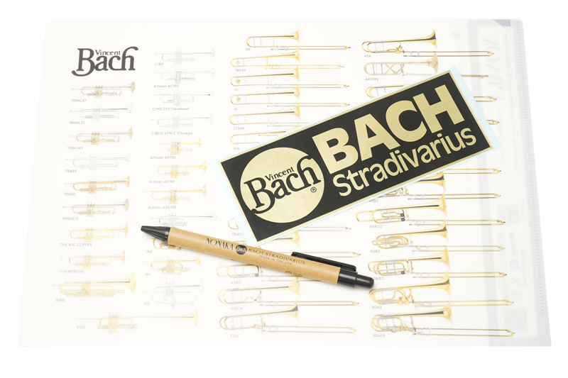 期間中、店頭にて販売中のバック製トランペット(新品・アウトレット)をご試奏いただいたお客様に、バックロゴ入りノベルティグッズ(クリアファイル・ボールペン・ステッカー)をプレゼント!