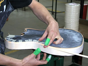 A-6のボディーバインディング装着。ハンドメイドで丁寧に装着される。